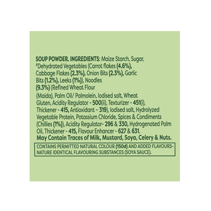 Knorr Soup Hot and Sour Vegetable is a ready-to-make soup that combines the bold flavors of hot and sour with a mix of vegetables. Ideal for those who enjoy a spicy and tangy taste, this soup offers a comforting and flavorful meal in just a few minutes. Key Features: Hot and Sour Flavor: A perfect balance of spicy and tangy flavors, making it ideal for those who love bold tastes. Rich in Vegetables: Contains a mix of vegetables, adding texture and nutrients to the soup. Quick and Easy to Prepare: Just add hot water to the mix and your soup is ready in minutes. No Artificial Preservatives: Made with quality ingredients, ensuring a healthy and delicious meal. Perfect for Any Time: Ideal for a quick snack, light meal, or as an appetizer to a larger meal. Versatile: Can be customized by adding extra vegetables or protein for a heartier meal. How to Use: Boil Water: Heat 1 cup (approximately 240 ml) of water. Add Soup Mix: Stir in the Knorr Hot and Sour Vegetable soup mix into the boiling water. Simmer for 2-3 Minutes: Let the soup cook for 2-3 minutes, stirring occasionally. Serve: Pour into a bowl and enjoy the spicy and tangy soup. Knorr Soup Hot and Sour Vegetable is a great choice for those craving a flavorful, spicy, and quick meal.