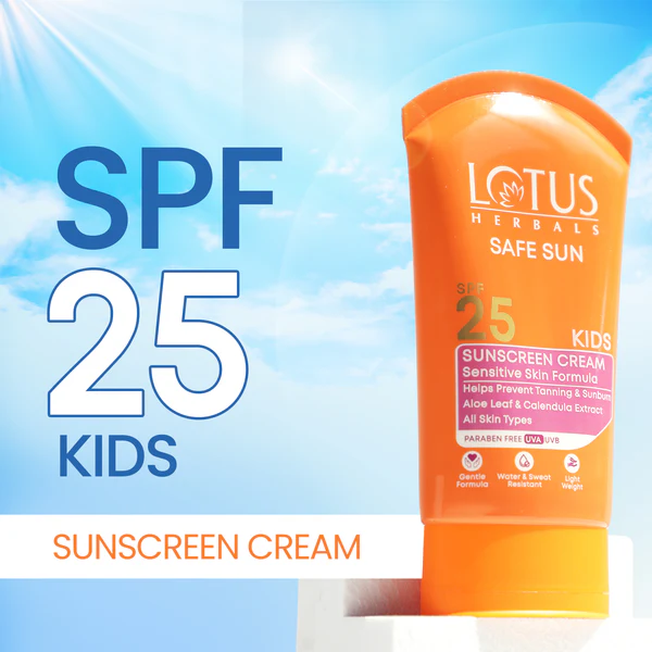 Lotus Herbals Kids Safe Sun SPF 25 is a mild and protective sunscreen designed for young, sensitive skin. It provides adequate UV protection for daily outdoor activities while keeping skin soft and moisturized. The gentle, non-sticky formula is safe for everyday use on children.