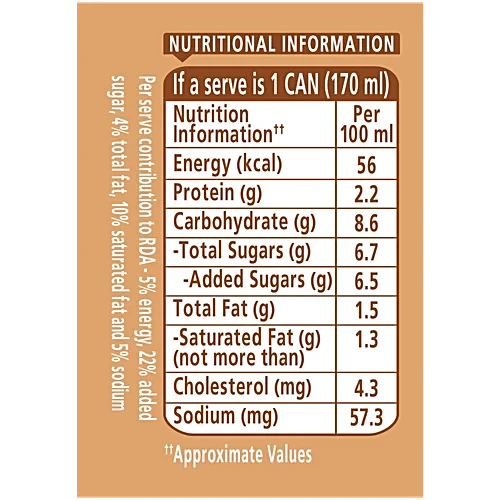 Nescafé Cold Coffee Choco Latte is a ready-to-drink chilled beverage that combines the rich, robust flavor of coffee with a delicious chocolate twist and creamy milk. It offers a smooth blend of coffee and chocolate, creating a sweet, indulgent drink that’s perfect for those who love both coffee and chocolate flavors. The drink is lightly sweetened, giving it a balanced taste with a creamy texture and a hint of cocoa. It’s convenient and refreshing, making it an ideal choice for a quick, flavorful pick-me-up anytime you’re craving a cold, chocolatey coffee treat.